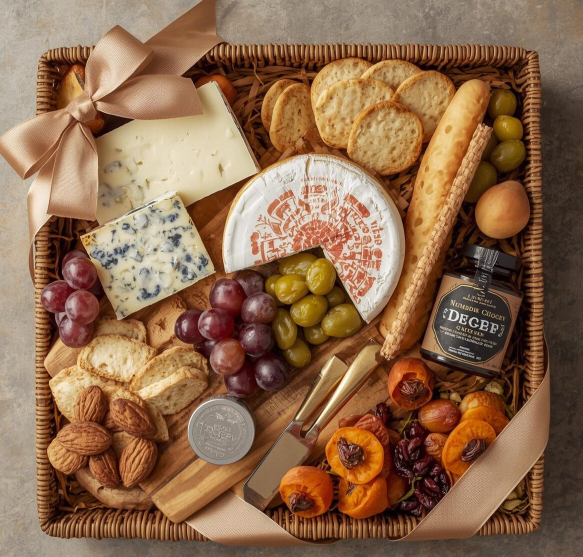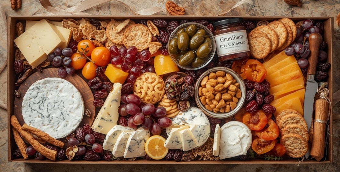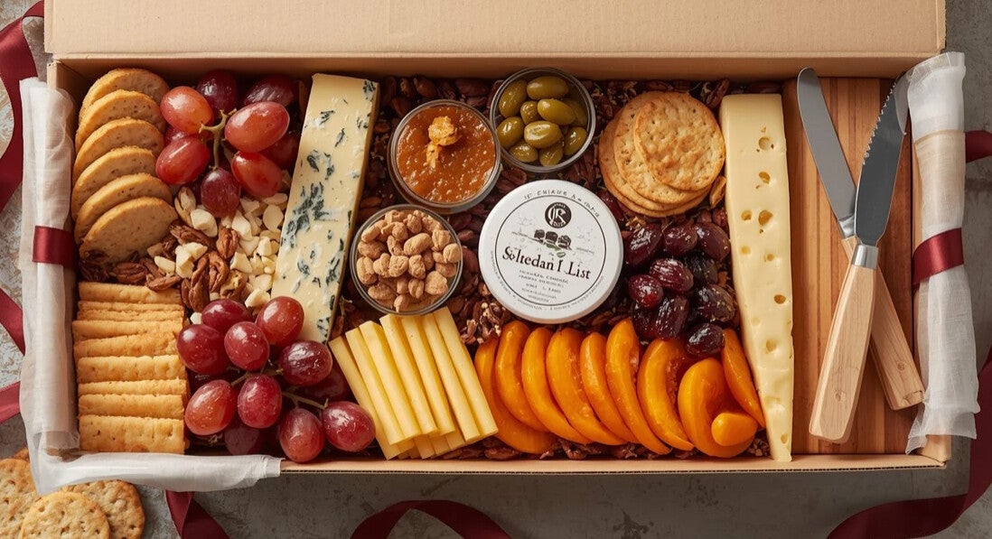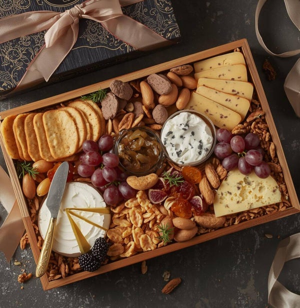 A thoughtfully handpicked cheese platter gift set is the perfect way to delight any cheese lover or mark a special occasion elegantly packed with ribbon in a box or in a basket, complete with a complimentary card.